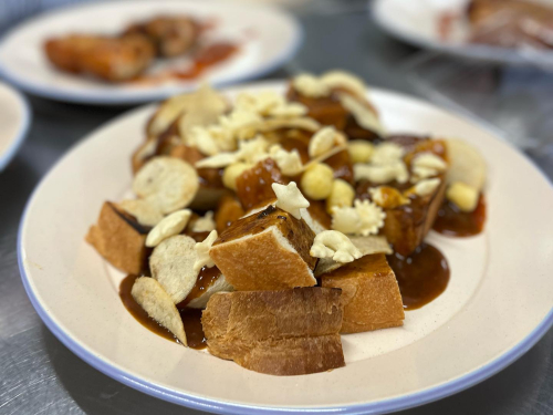 上からレトルトカレーをかけて、ポテトチップス、おっとっとを