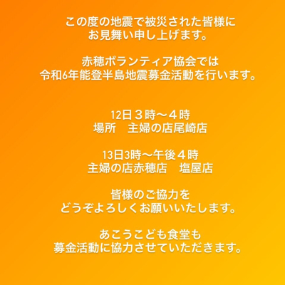 赤穂ボランティア協会では令和6年能登半島地震募金活動を行います。