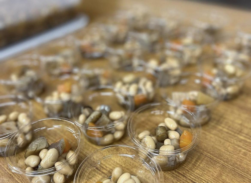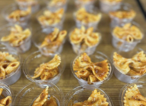 を使いレッドソックスさんが作ってくれたハヤシライス、副菜は、煮豆、ペンネと、新玉ねぎのミートソースあえ、水菜とシーチキン、八朔、リンゴ、コーン、胡桃やアーモンド のデリ風サラダ、寄付頂いたポテトチップス、泉平様より提供の「ひなまつり桃の花三色ゼリー」でした!