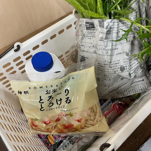 #お米でとろーりとろける シュレットタイプをいただきました。皆さんなかなかチーズなど高くて買えないのでとても喜んで持って帰られました。