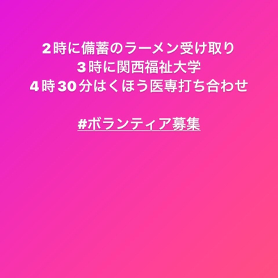 今日も、たくさんの支援をありがとうございます。手伝ってくださるボランティア募集中です!急な依頼でも動ける方おられましたらよろしくお願いします。...