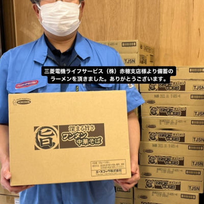 三菱電機ライフサービス(株)赤穂支店様より備蓄のカップラーメンを20ケース頂きました。ありがとうございました!早速、たくさんの方が取りにこられましたー。...