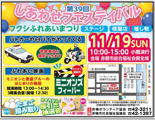 あこう子ども食堂も駄菓子ブースで出店します。ミニオンの映画、パトカー...