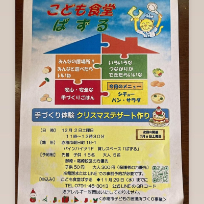 東校区の「こども食堂ぱずる」12月2日開催です!お申し込みが必要です。...