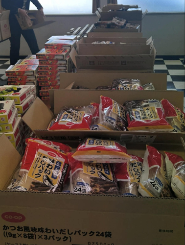 赤穂市内のひとり親家庭等のご家庭に約100世帯食品応援パックを配送する事ができました。